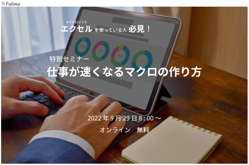 練習で作成したエクセルのマクロ作成セミナーのLPです。(WordPressのブロックエディタで作成したオリジナル版。Lightingテーマに、SnowMonkeyのBlocksとEditorとFormsのプラグイン使用。このサイトへ移動するにはここをクリック。